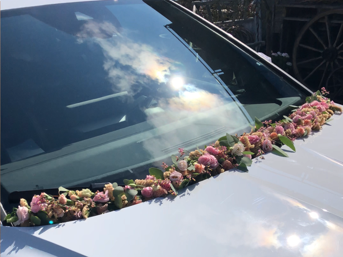 Unsere Autodekoration wird harmonisch auf Ihren Brautstrauß, die Hochzeitsfloristik und das Farbschema Ihres besonderen Tages abgestimmt. So entsteht ein stimmiges Gesamtbild, das Ihre Feier unvergesslich macht.